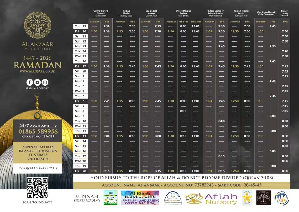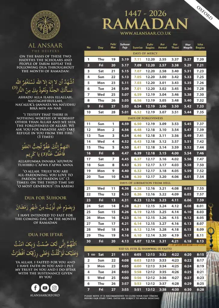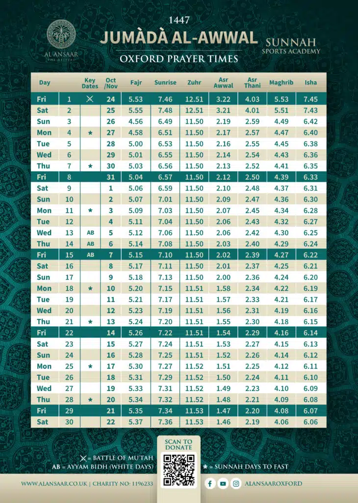 Al Ansaar presents monthly prayer times which it intends to revive key dates for the month.